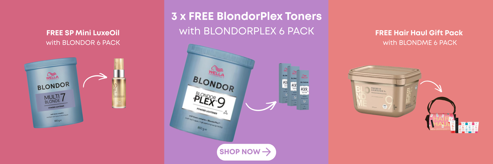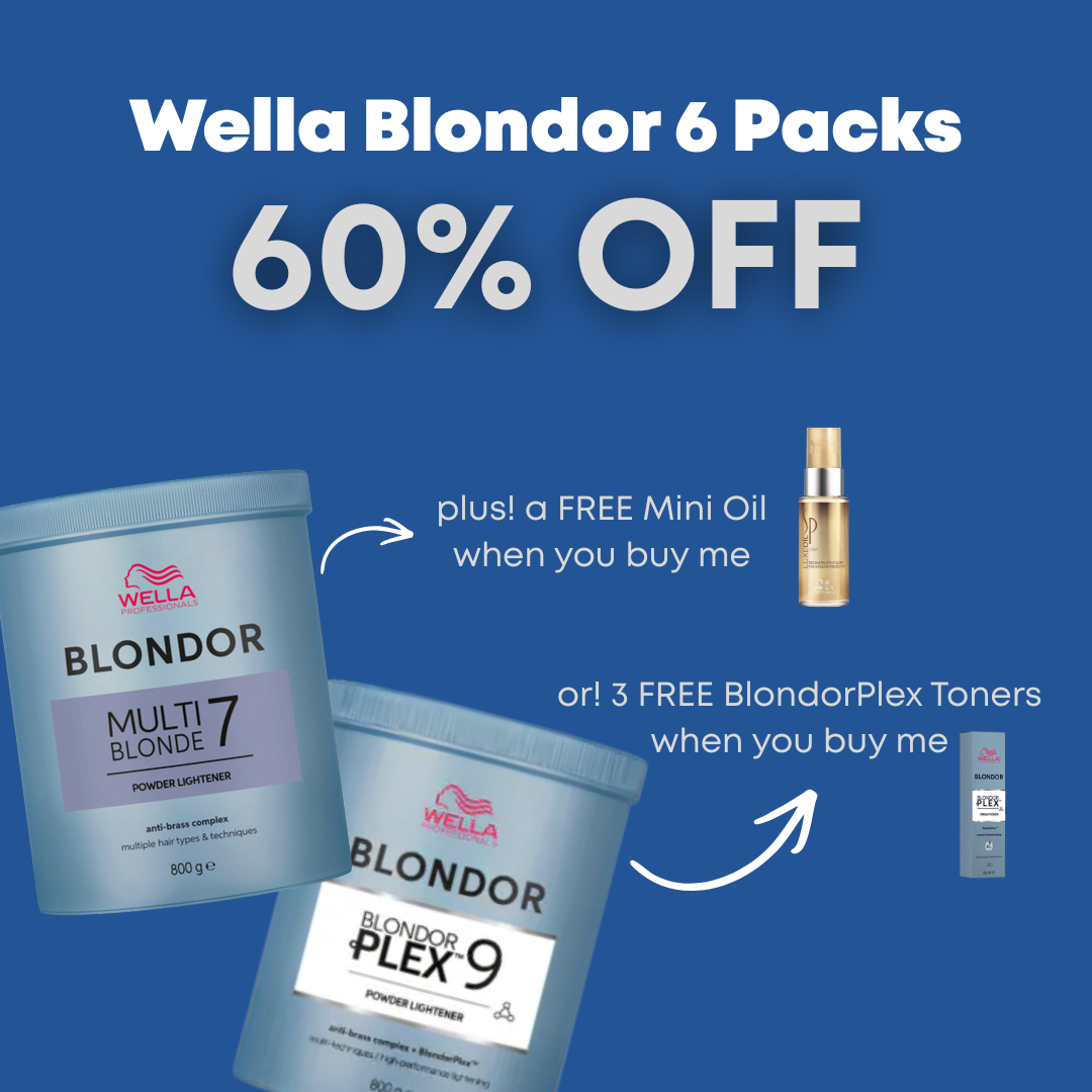 Stock upStock up on your Wella Blondor and BlondorPlex now and get up to 60% off + free gifts with purchase. Limited stock available!