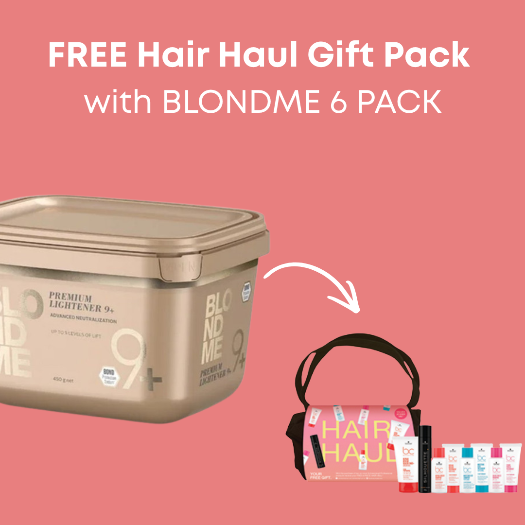 Stock upNow's the time to restock your Schwarzkopf BlondMe 450g. Buy a 6 pack and get a FREE Hair Haull Gift Pack.