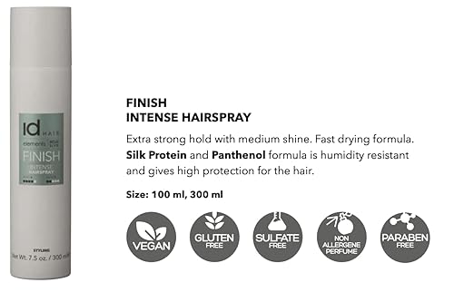 idHAIR Elements Xclusive Intense Hair Spray guarantees a strong hold for those who want their hairstyles to stay put. Ideal for all hair types, this hairspray provides the perfect solution for achieving and maintaining those hard-to-hold styles without compromising on flexibility or movement. Offering a light gloss and leaving a beautiful satin finish, this hairspray adds an extra touch of glamour and sophistication to your locks.