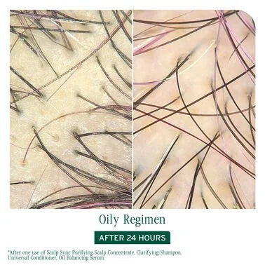Maintain a fresh, balanced scalp between washes with Biolage Scalp Sync Oil Balancing Purifying Serum. This lightweight, fast-absorbing serum, powered by fermented tea, effectively absorbs excess oil and helps prevent sebum buildup, keeping hair looking healthy and revitalized. The fermented tea blend, known for its antioxidant and anti-inflammatory properties, helps to reduce irritation and itchiness, promoting a comfortable and healthy scalp environment. Suitable for all hair types, including color-treated hair. This paraben-free, mineral oil-free, silicone-free, and colorant-free formula respects your hair's natural balance. *Consumer test after application of Purifying Scalp Concentrate, Clarifying Shampoo, Universal Conditioner, and Oil Balancing Serum.