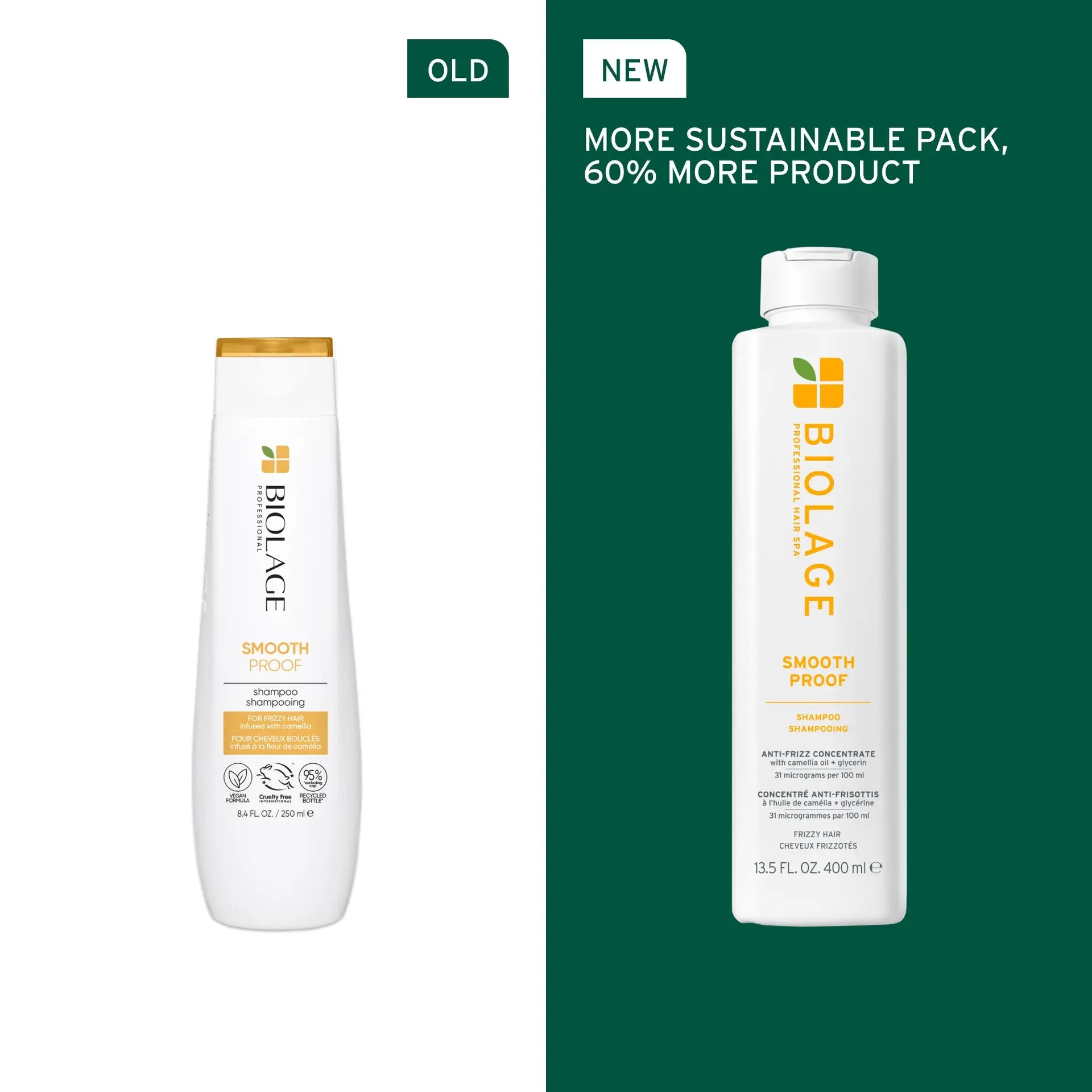 Biolage Smoothproof Shampoo 400ml is a haircare product that provides humidity control and anti-frizz smoothness for frizzy and unmanageable hair.