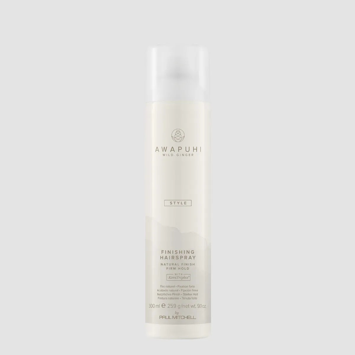 Paul Mitchell Awapuhi Wild Ginger Finishing Spray works as a natural finish hairspray that locks in style with a humidity-resistant, firm hold. Lock in style with this fast-drying hairspray. It provides humidity resistance and shine with a touchable, natural finish and firm hold. Hand-harvested awapuhi extract from our farm in Hawaii balances moisture, leaving hair feeling soft and healthy.