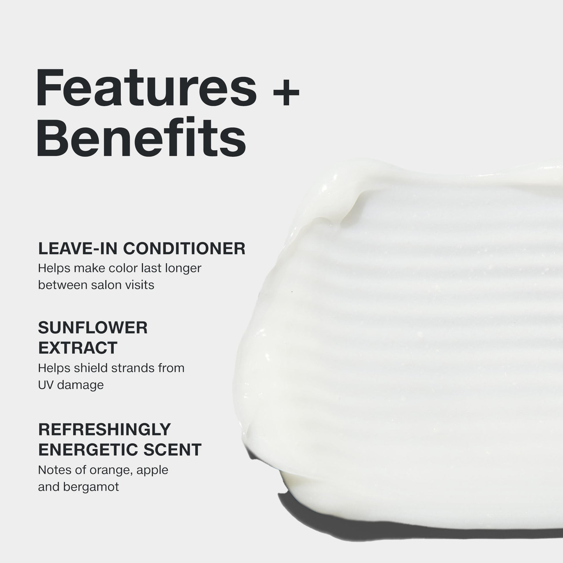 Preserve and protect hair color with this leave-in spray. It makes color-treated hair look conditioned and super shiny while it locks in and extends the life of hair color. The spray-on formula contains sunflower extract to help provide sun protection and keep colour from fading while conditioning extracts add moisture and shine.